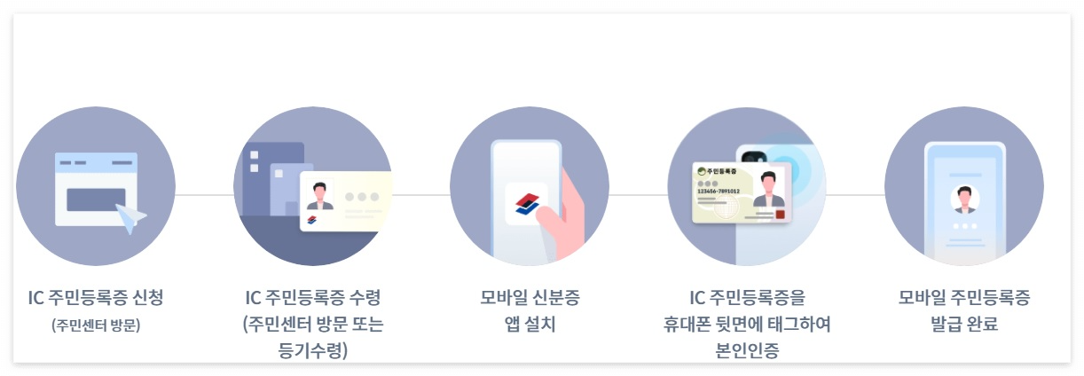 IC칩이 내장된 새 주민등록증을 갖고 있다면 주민센터 방문없이 IC 주민등록증을 태그하여 모바일 주민등록증을 발급받을 수 있습니다.