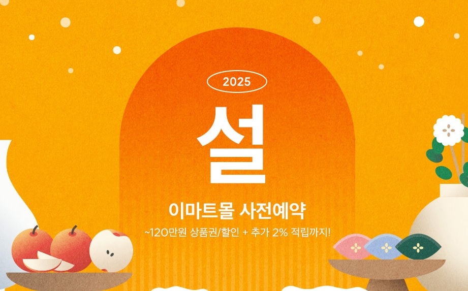 2025년 1월 15일까지 이마트에서 설 선물세트 사전예약을 진행합니다. 사전예약 기간 동안 행사카드 결제시 상품별로 최대 50% 할인혜택과 구매금액대별로 최대 120만원의 신세계상품권을 증정합니다. 특히 신세계 상품권 증정은 사전예약 기간 내에 일찍 구매할 수록 할인이 커집니다.
